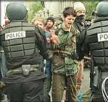 ![]() ![]() ![]() ![]() These well dressed, well fed middle class kids believe money is evil. ![]() This girl offers the cops flowers. But when Mario tried to enter the building he was attacked by several of her friends and thrown to the ground. ![]() Hey, why are the cops picking on this guy? He's not hurting anyone! Unless they disagree with his viewpoint! |